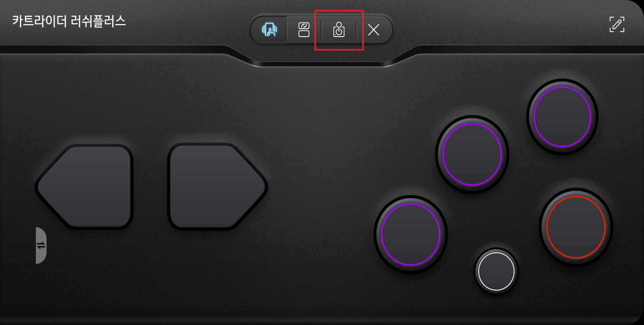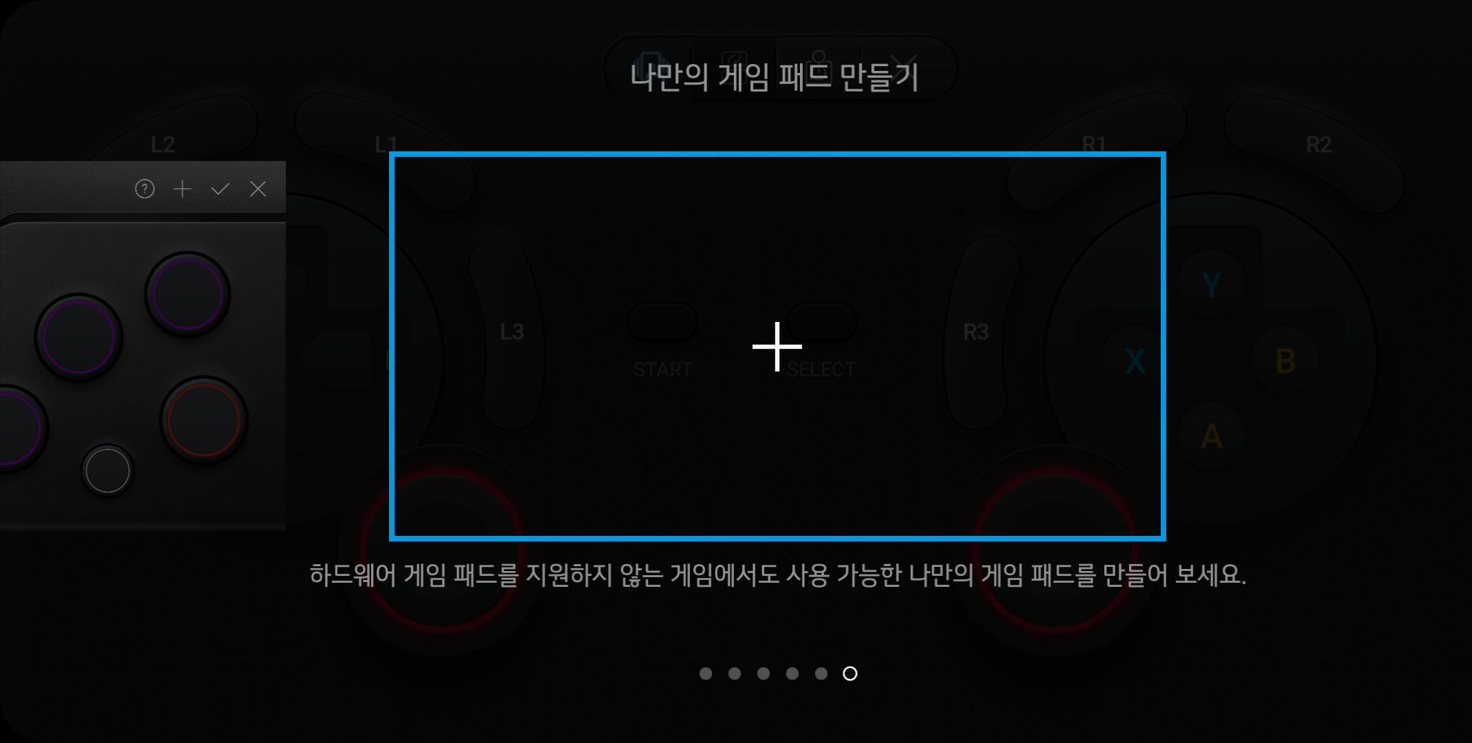 그후 상단의 게임 패드 모양의 아이콘을 선택합니다. 그후 여러가지 게임 패드들이 나타나는데 전 나만의 게임 패드 만들기를 선택 게임 패드를 새로 만들었습니다.