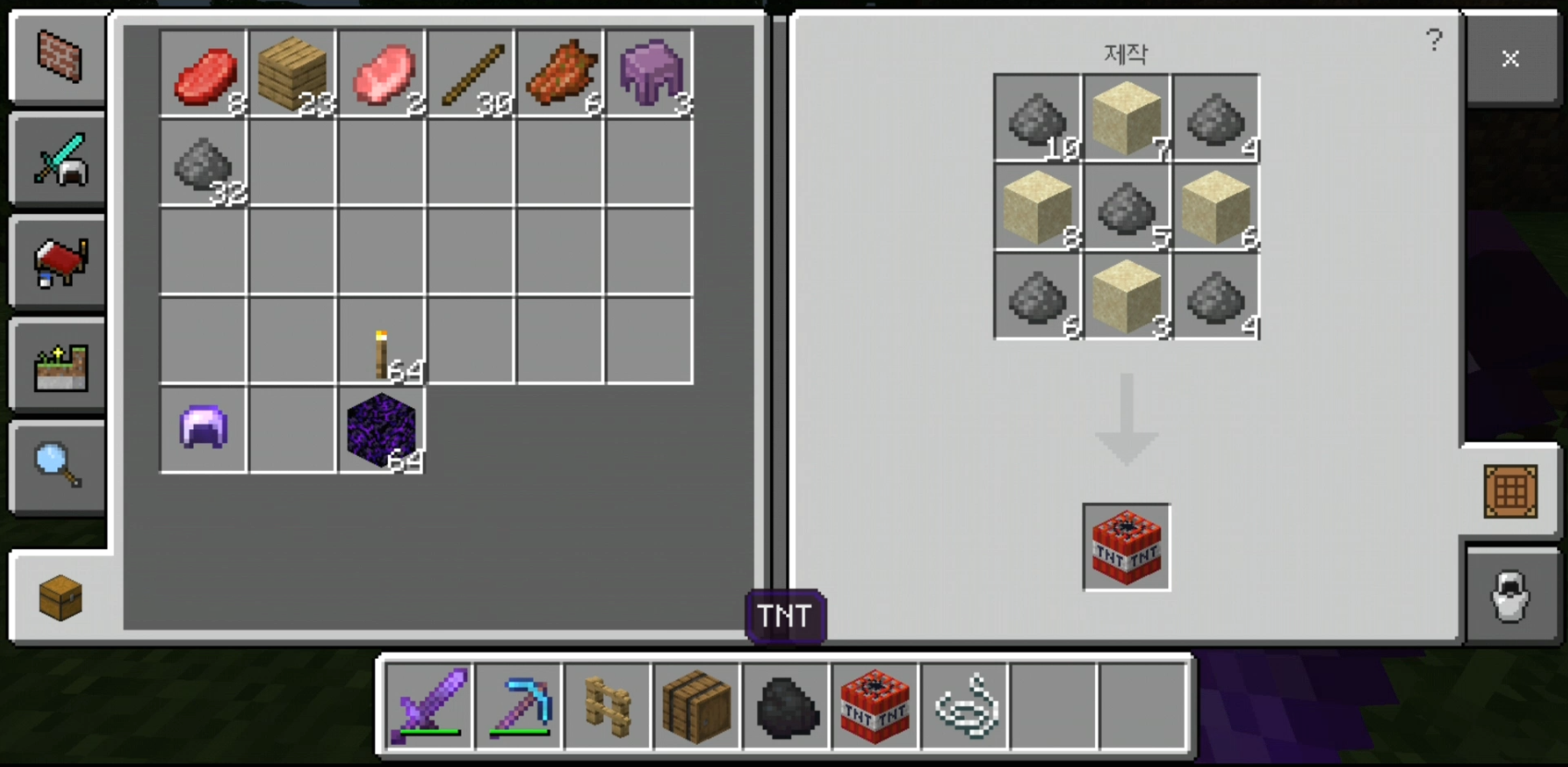 화약과 모래를 모두 모으셨다면 이제 TNT를 조합합니다.