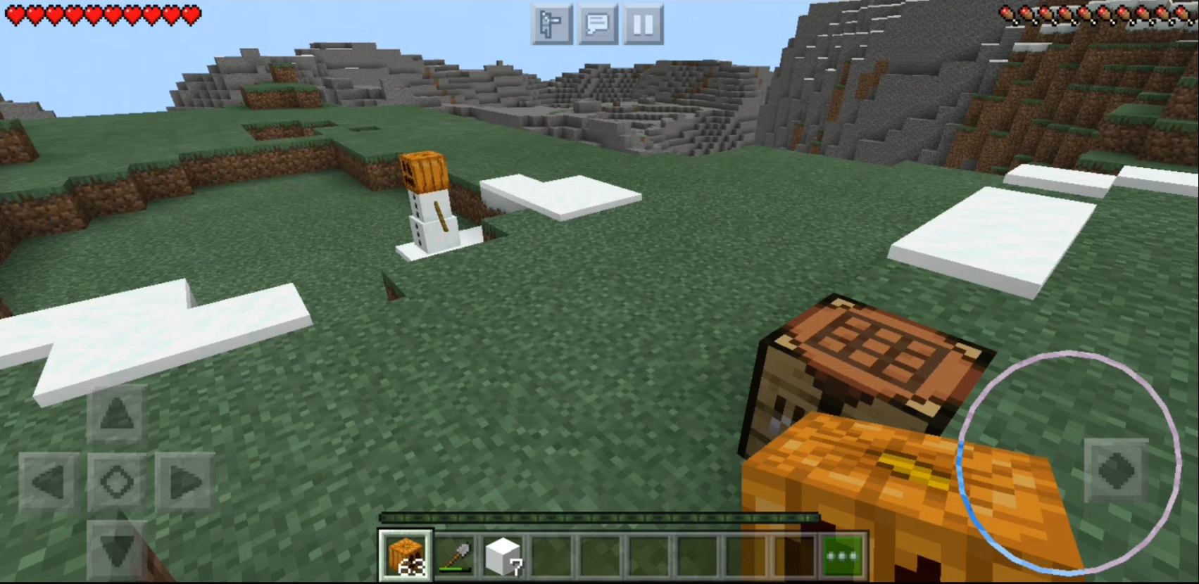 눈사람을 제작하기 위해서는 눈 블록+조각난 호박이 필요합니다. 조각난 호박은 하단의 철골렘 제작법을 참고하시기 바랍니다.