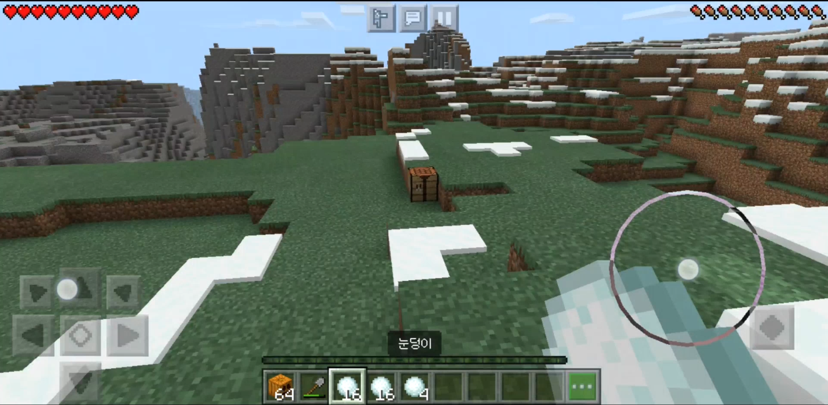 3. '삽'으로 눈을 터치하면 눈덩이를 얻을 수 있습니다.