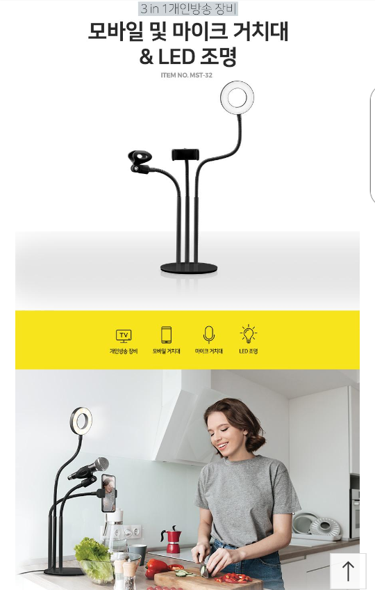 유트버들을 위하여 휴대폰, 마이크, 조명이 함께되는 거치대가 있어 나름 가성비가 좋아 소개하고자 합니다.