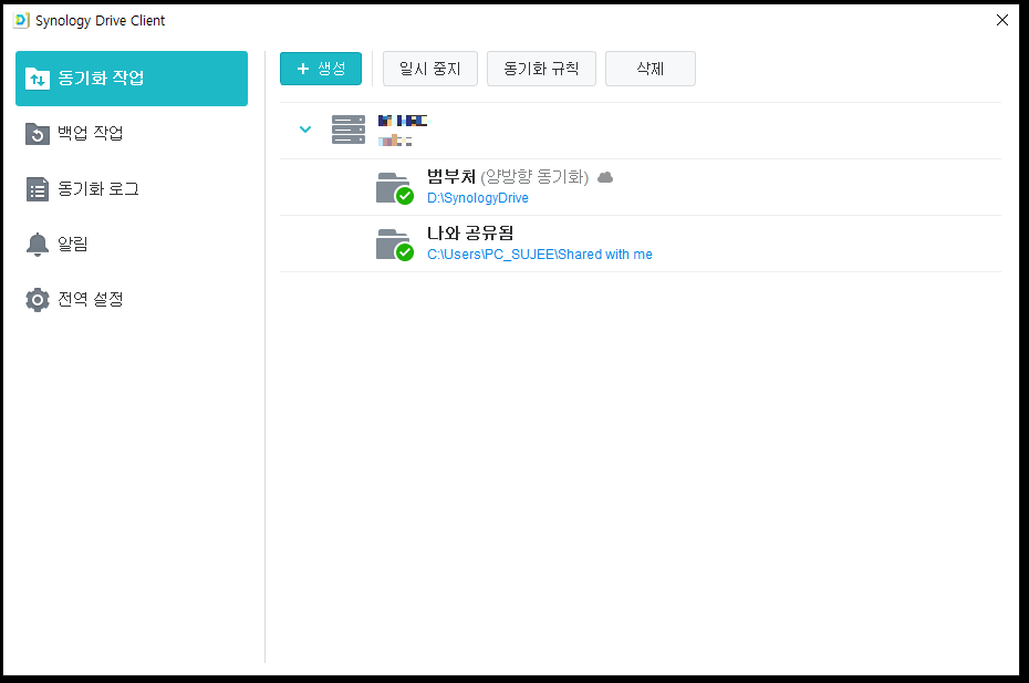 시놀로지 드라이버에서 설정한 폴더가 PC와 연동이 됩니다. PC에서 간단하게 폴더가 복사해놓아도, 자동으로 NAS로 데이터가 동기화가 됩니다.