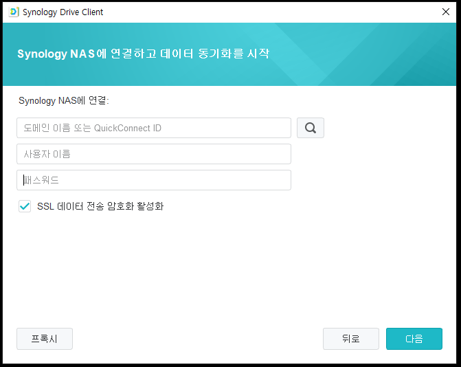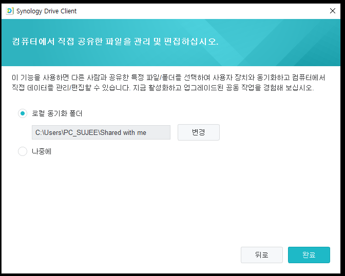 설치가 완료되었다면 자동으로 시놀로지 드라이버 클라이언트가 실행됩니다.