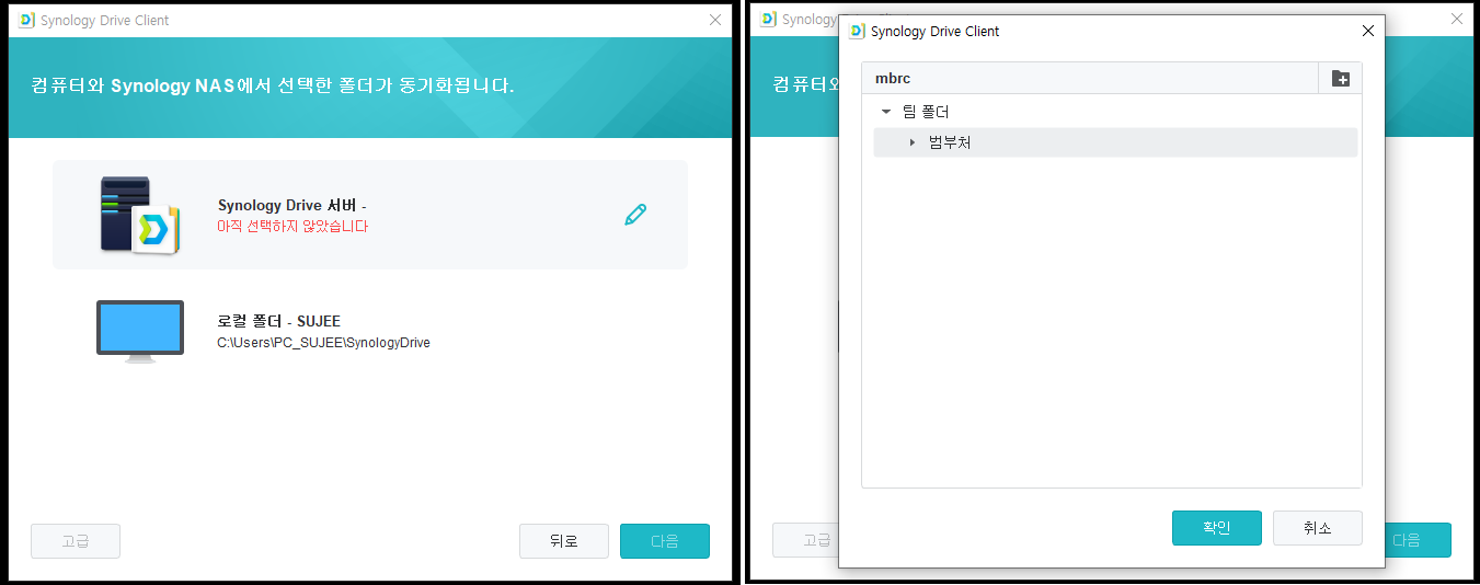 7. 동기화할 폴더를 선택하고, 다음 버튼을 클릭합니다.