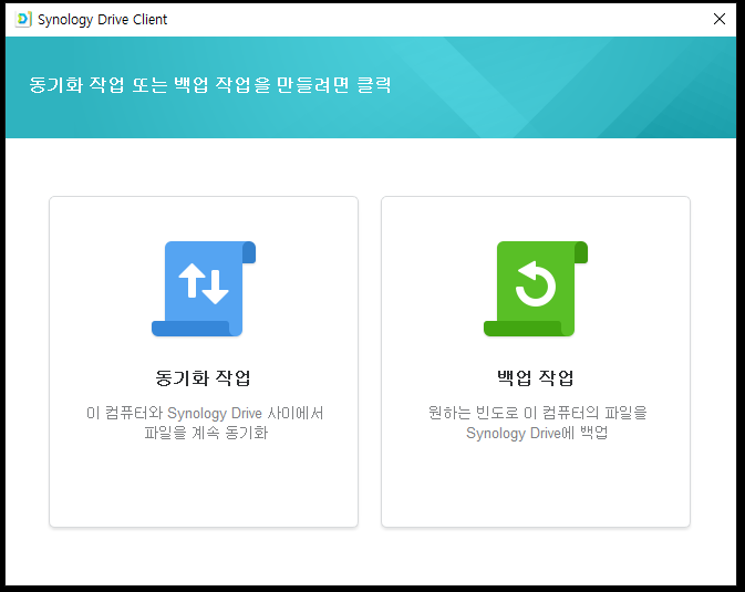 우리는 드롭박스나 원드라이브처럼 실시간으로 계속 동기화를 진행할 예정이기 때문에 동기화 작업을 선택합니다.