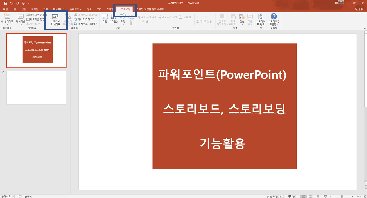 파워포인트(PowerPoint)의 기본기능 스토리보딩 메뉴로 들어가 보겠습니다.