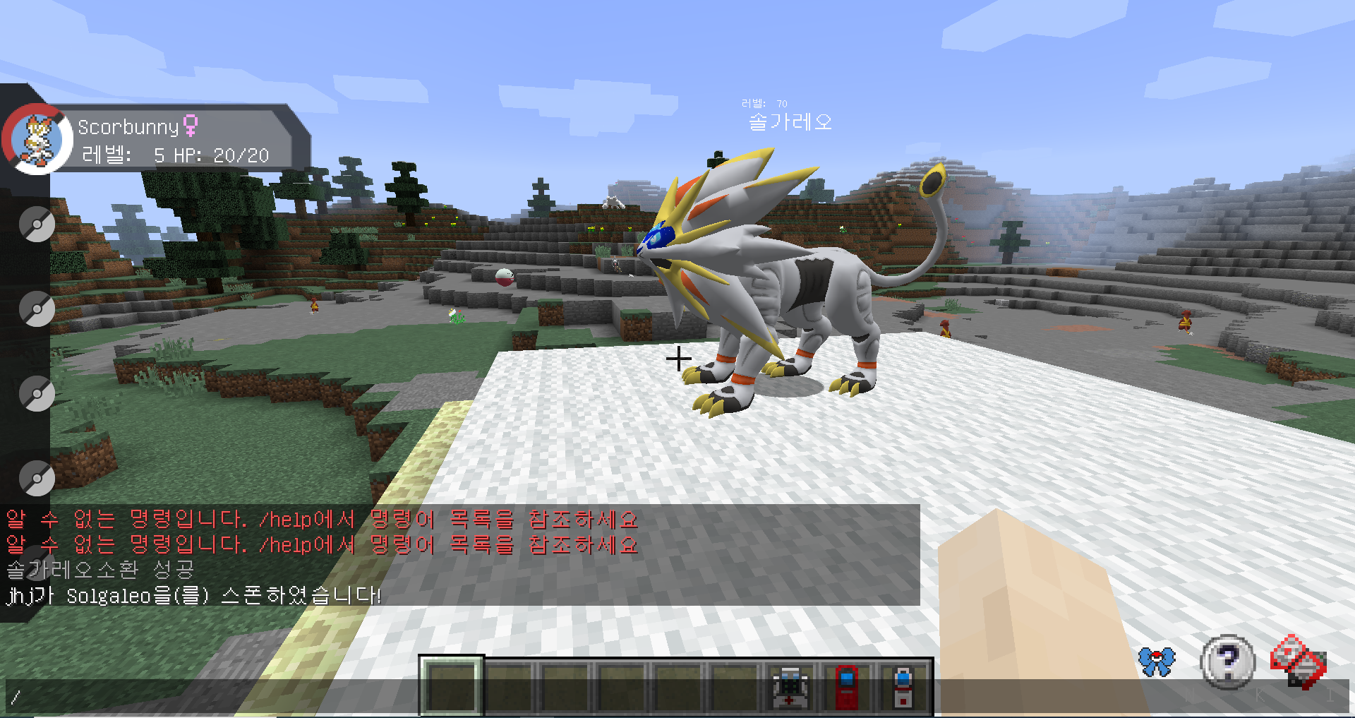 예를들어서 '/pokespawn Solgaleo'를 입력하면 솔가레오가 소환됩니다.