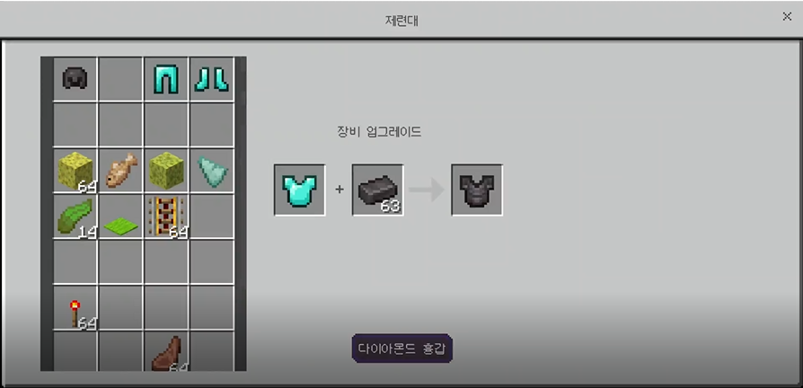 2. 제련대에서 다이아 장비와 네테라이트 주괴를 통하여 네더 장비로 업그레이트가 가능합니다.