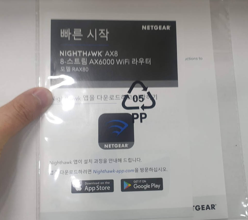 케이스를 개봉하면 맨 상단의 아래와 같은 설명서가 제공이 됩니다. Nighthawk-app.com에 방문하여 ISO 앱과 안드로이드 앱을 다운로드 받아서 모바일로 편하게 빠른 시작을 할 수 있도록 제공하고 있습니다.