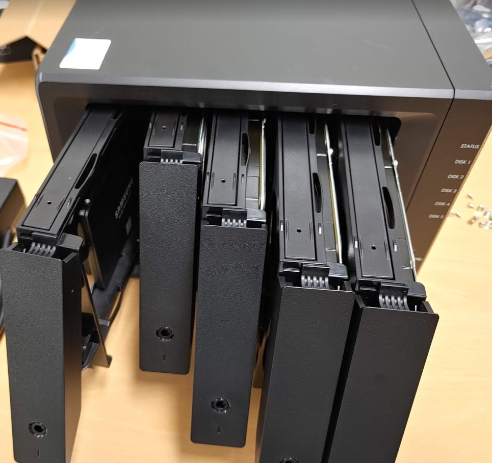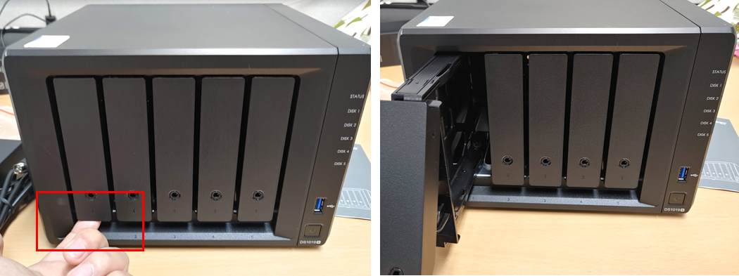 시놀로지 나스 DS1019+ 를 설치하기로 마음먹었습니다. 저는 SSD 256기가 1개와 8T 하드디스크 4개를 설치 하였습니다. 하드웨어 설치 부터 OS 설치 까지 다루어보도록 하겠습니다.