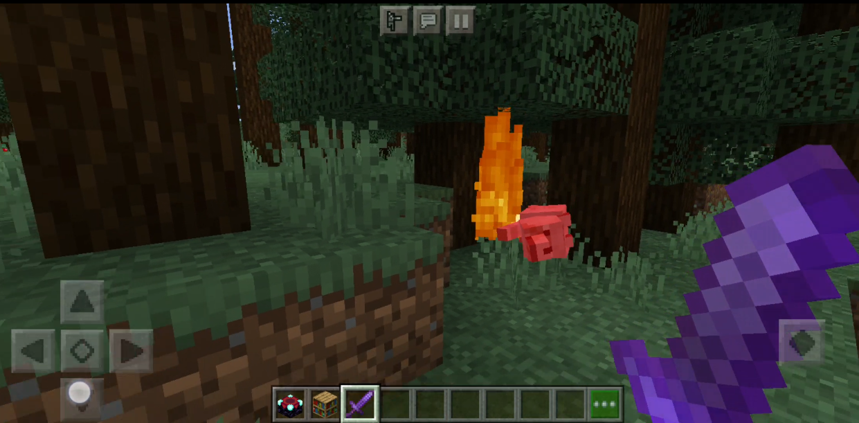 이제 주변 마법 부여가 완성되었습니다. 주변 동물을 검으로 공격하면 화염 공격이 같이 발생하게 됩니다. 돼지, 소를 잡으면 익힌고기도 얻을수 있습니다.