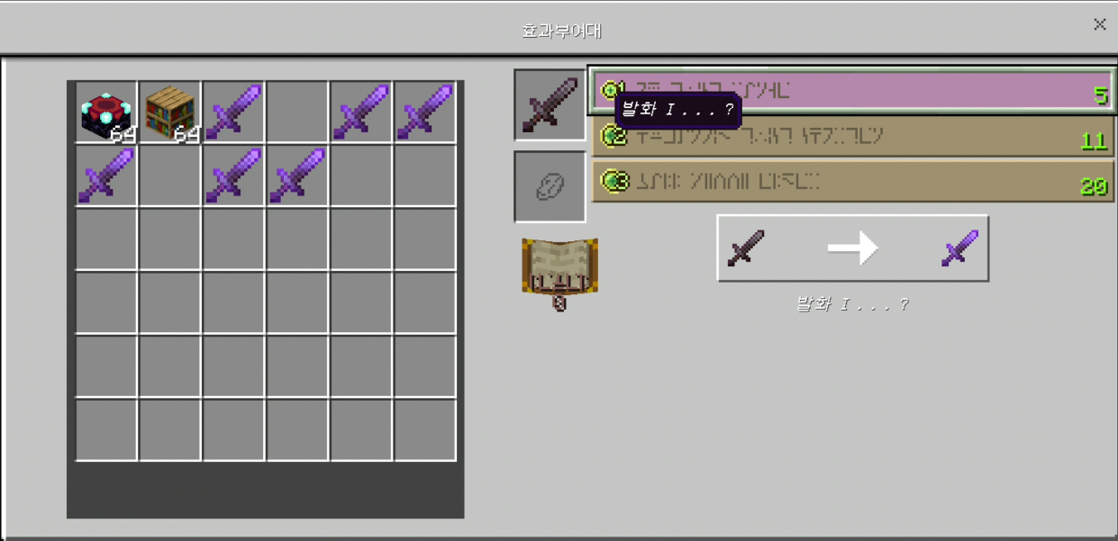 어느게임에서든지 불검은 항상 있는거 같습니다. 마인크래프트에서도 마법부여를 통해서 멋있는 불검을 만들수 있습니다. 검에 발화라는 마법을 부여하면 됩니다.