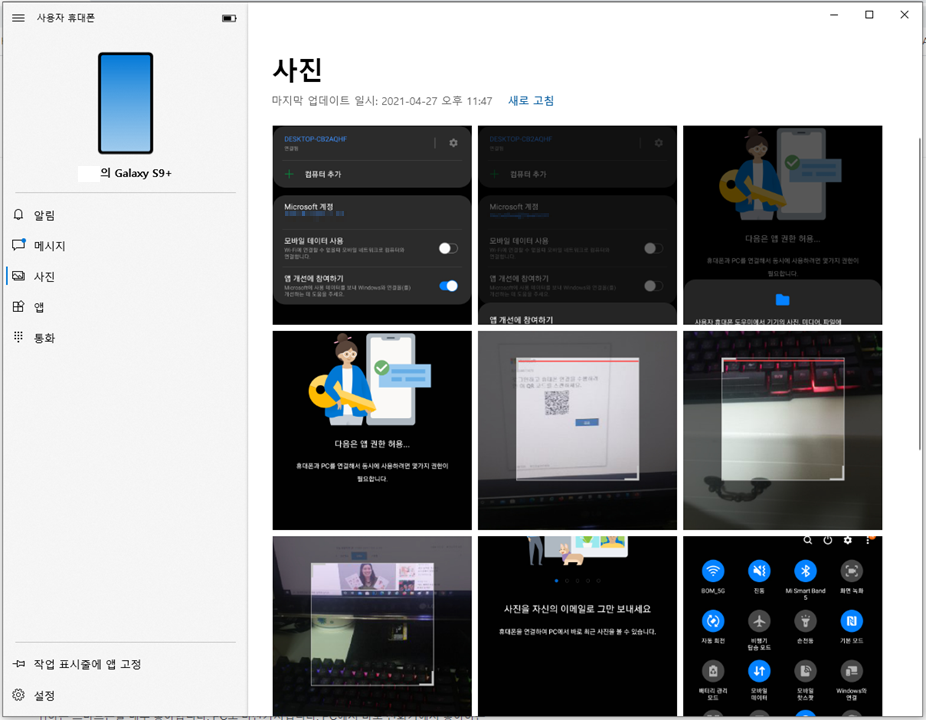삼성 갤럭시 스마트폰에서 안드로이드 스마트폰을 윈도우10에 연결하여 알림, 메시지, 사진, 앱 등을 확인하는 방법을 공유해드리려고 합니다.