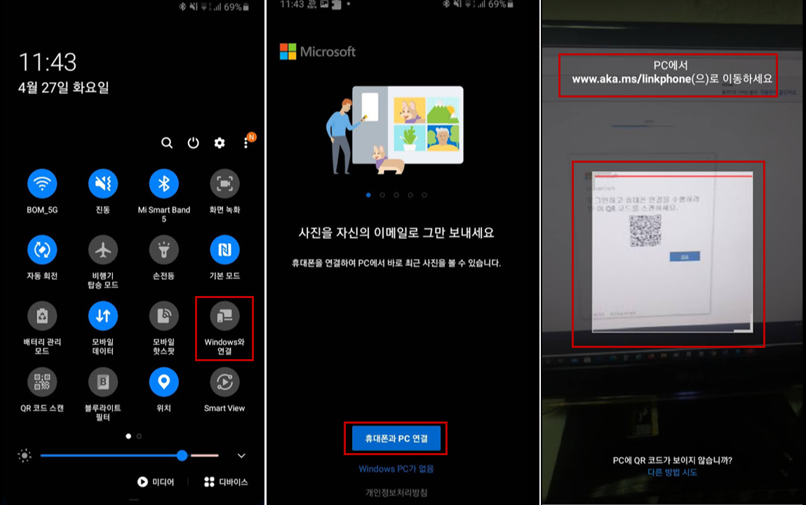 3. PC에서 https://aka.ms/linkphone 메뉴를 클릭하면 자동으로 PC와 연동될수 있는 윈도우 앱이 실행이 됩니다.