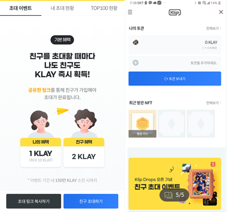 2. https://klipwallet.com/?target=/klip-event/invite-friends-popup3%3FklipId%3DKOGYxNzFiZDRpbnZpdGVyMTA0NjE3MQ%3D%3D 저의 친구링크는 옆의 링크를 접속해주셔서 가입을 진행해주시면 됩니다.