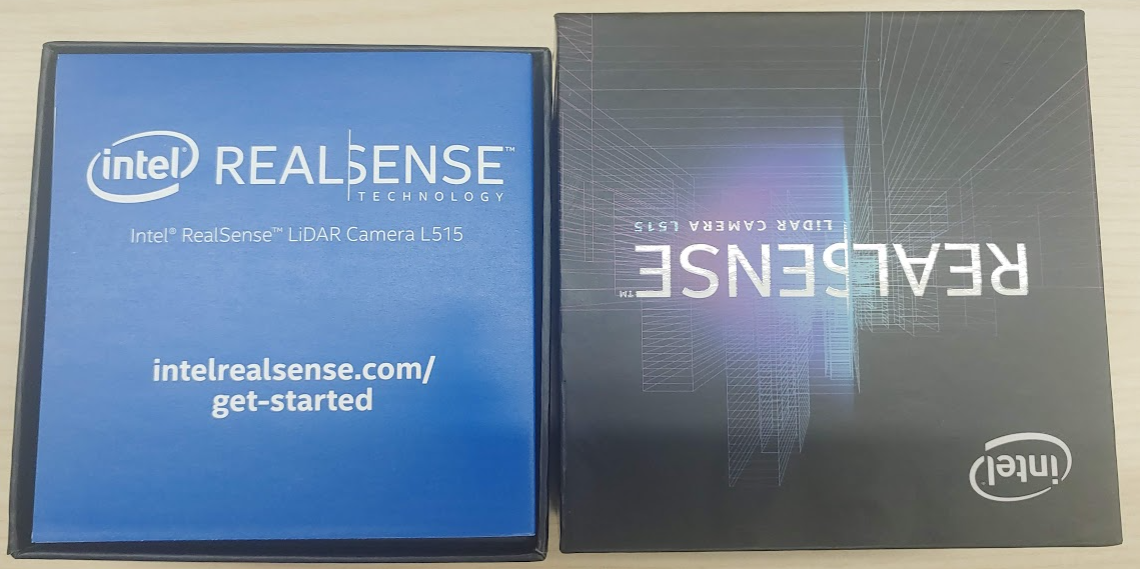 LiDAR Camera L515를 구매하게 되면 아래와 같은 박스의 형태로 제품을 받게 됩니다.