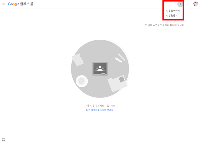 2. + 버튼을 클릭하고, 수업 만들기를 클릭합니다.