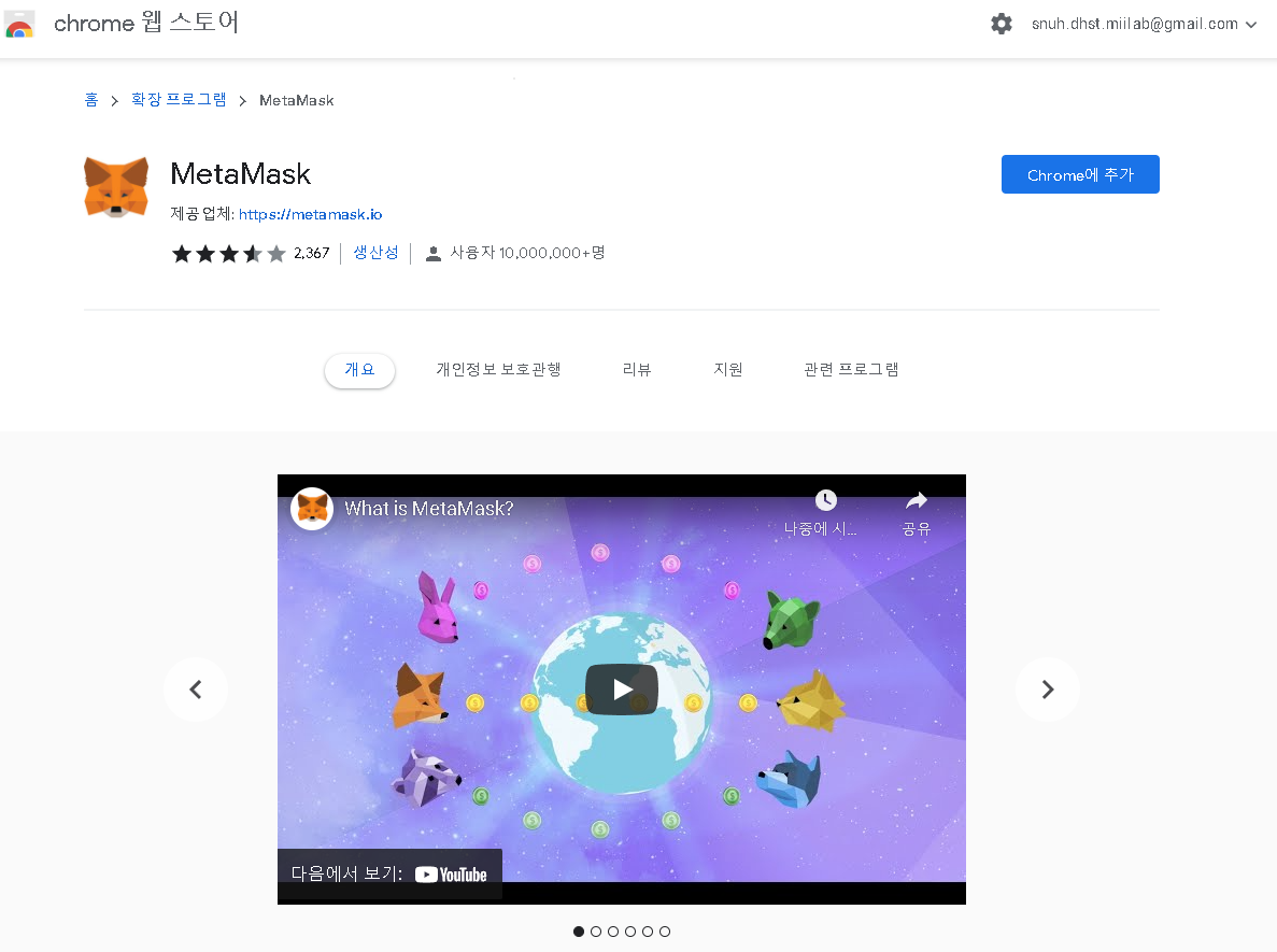 4. "Chrome에 추가" 버튼을 클릭 후 MetaMask를 설치 합니다.