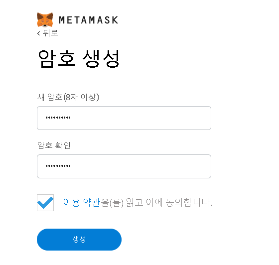 8. 패스워드를 입력하고 생성 버튼을 클릭 합니다.