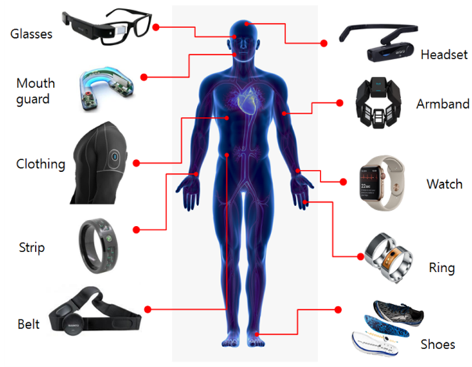 웨어러블 기기가 획득할 수 있는 정보는 크게 사용자의 신체변화 정보와 사용자 주의를 둘러싼 환경 정보임. 사용자의 신체변화 정보는 사용자의 움직임(운동) 정도와 그에 따른 생리적 현상에 관한 정보이며 이동거리, 이동속도, 이동 고도 등을 측정할 수 있고, 활력징후로 혈압, 맥박, 체온을 측정할 수 있으며, 움직임(운동)에 따른 칼로리, 체중, 땀 등의 변화에 관한 정보를 제공할 수 있음. 환경정보로는 사용자가 접해 있는 환경에 관한 것으로 온도, 습도, 기압, 고도, 자세, 햇빛 등의 정보를 제공할 수 있음.
