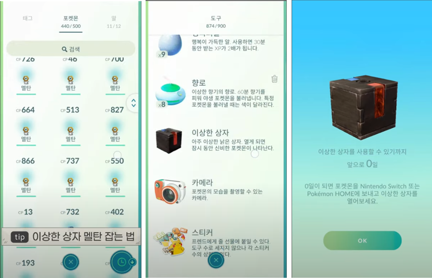 포켓몬고에 이상한 상자를 통해서 멜탄을 잡는 방법을 소개 해드리겠습니다. 이상한 상자를 개봉하게 되면 1시간 동안 멜탄이 계속 나타나게 됩니다. 이상한 상자를 얻어야 합니다.