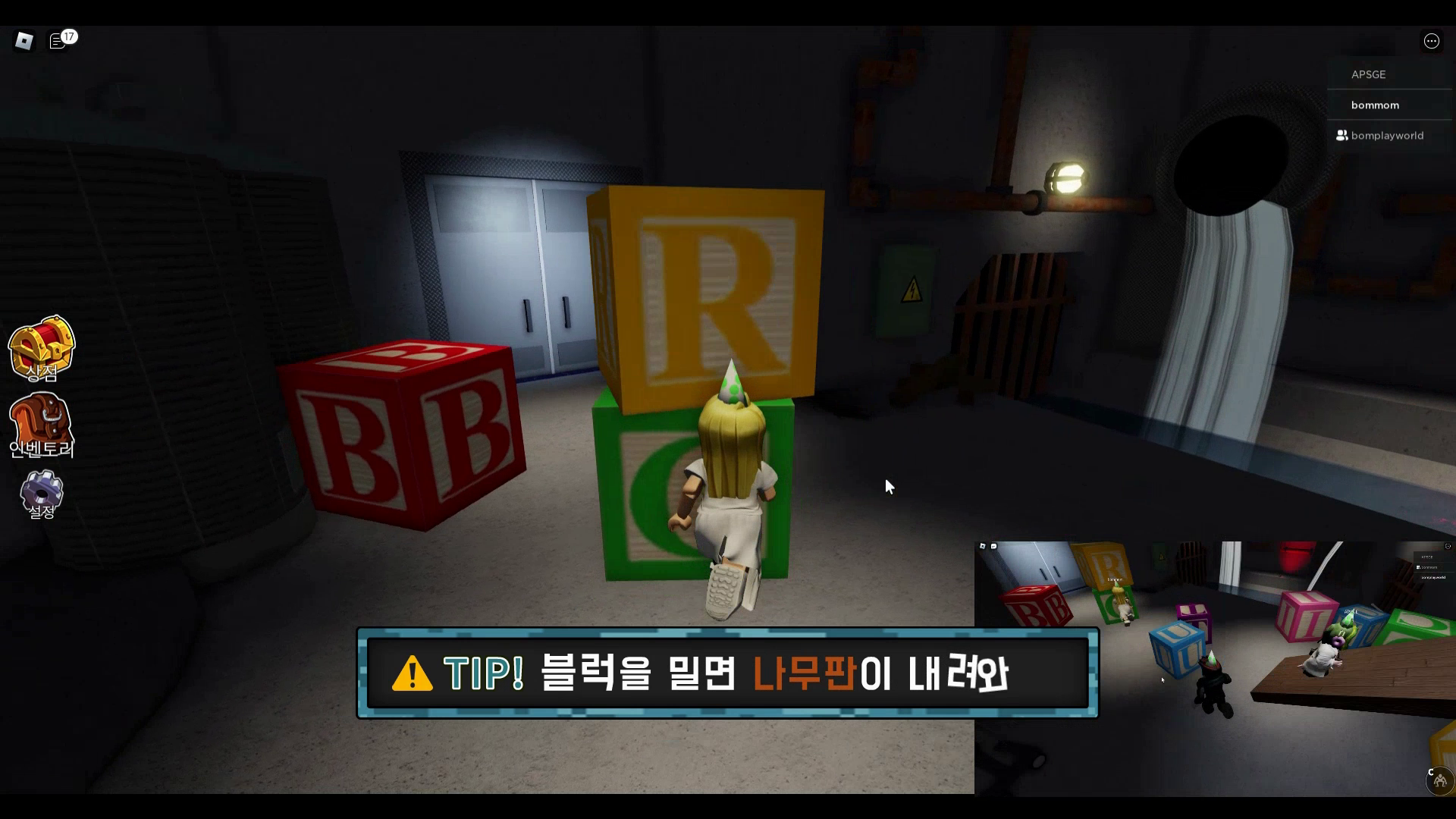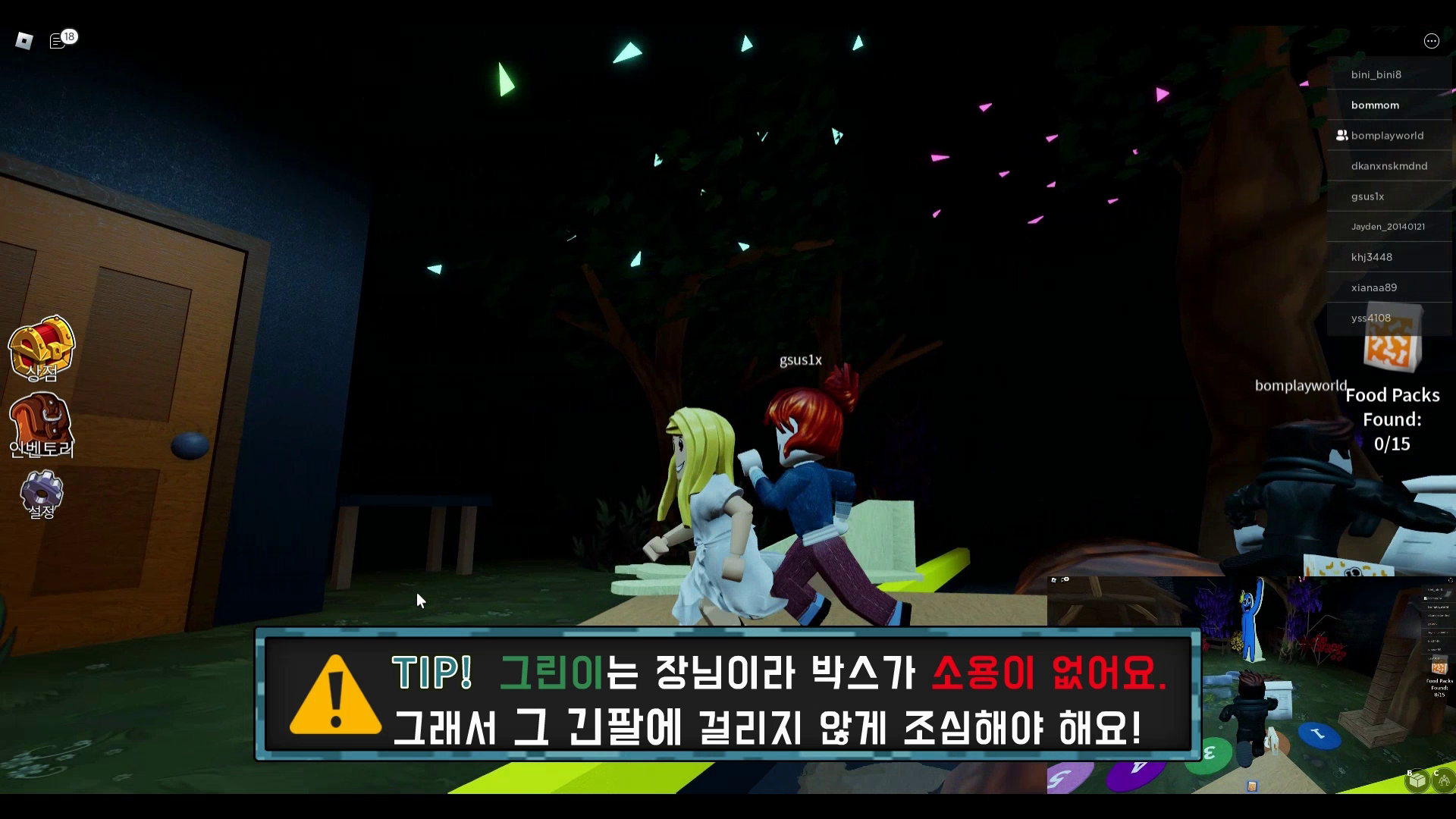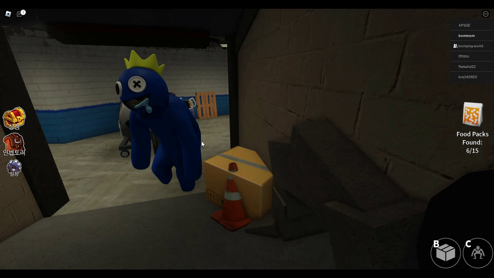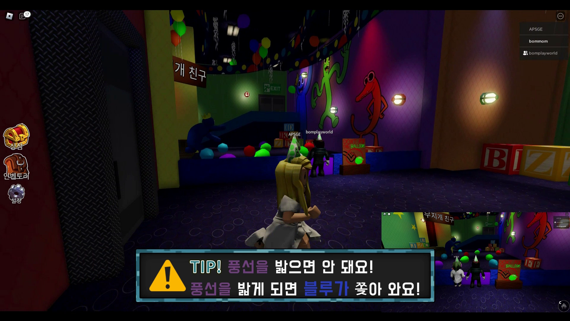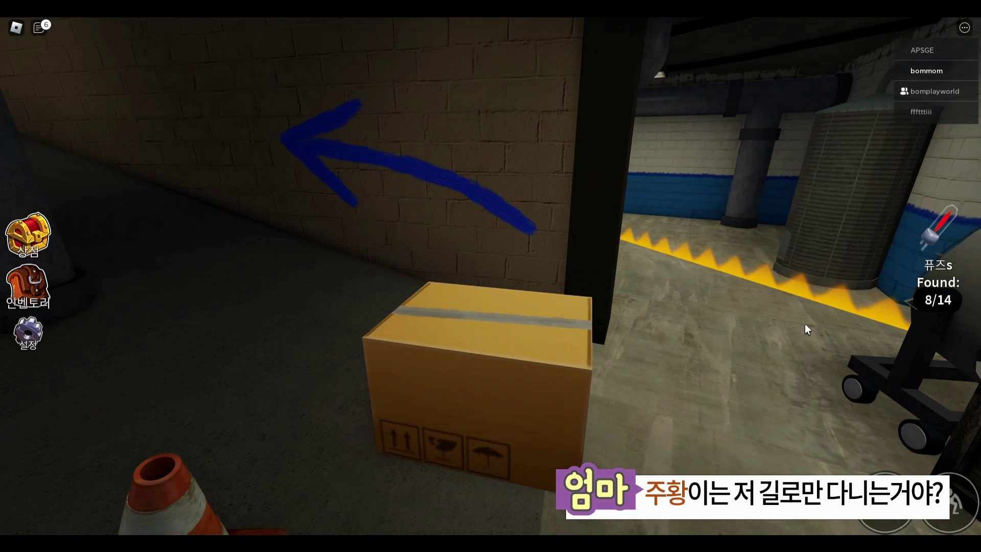 블루가 다시 나타나는데 풍선을 밟으면 블루가 쫓아 오게 됩니다. 여기서는 박스사용이 안되니 참고해주시기 바랍니다.
