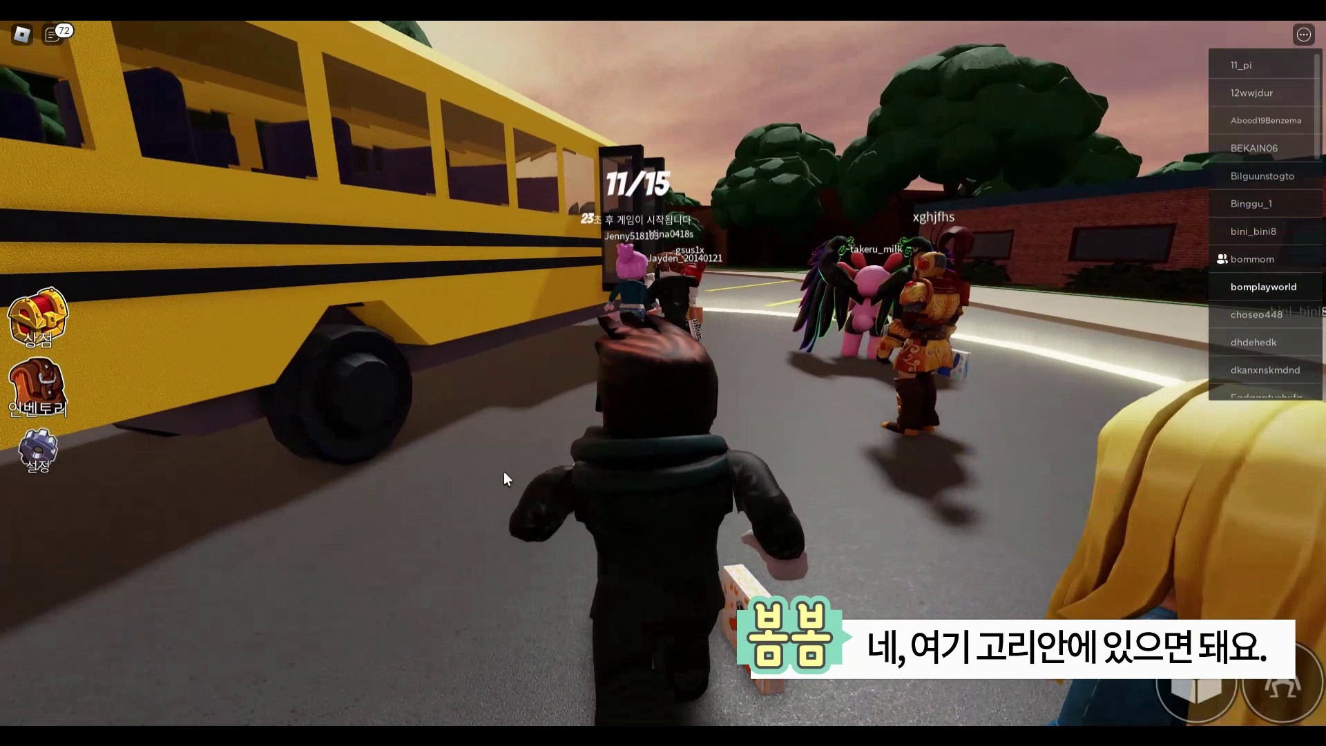 게임의 시작은 버스 앞 원고리안에 있어야 플레이가 되고 시간이 카운터 되고 있습니다. 플레이를 원하시면 원 고리 안으로 들어가면 됩니다.