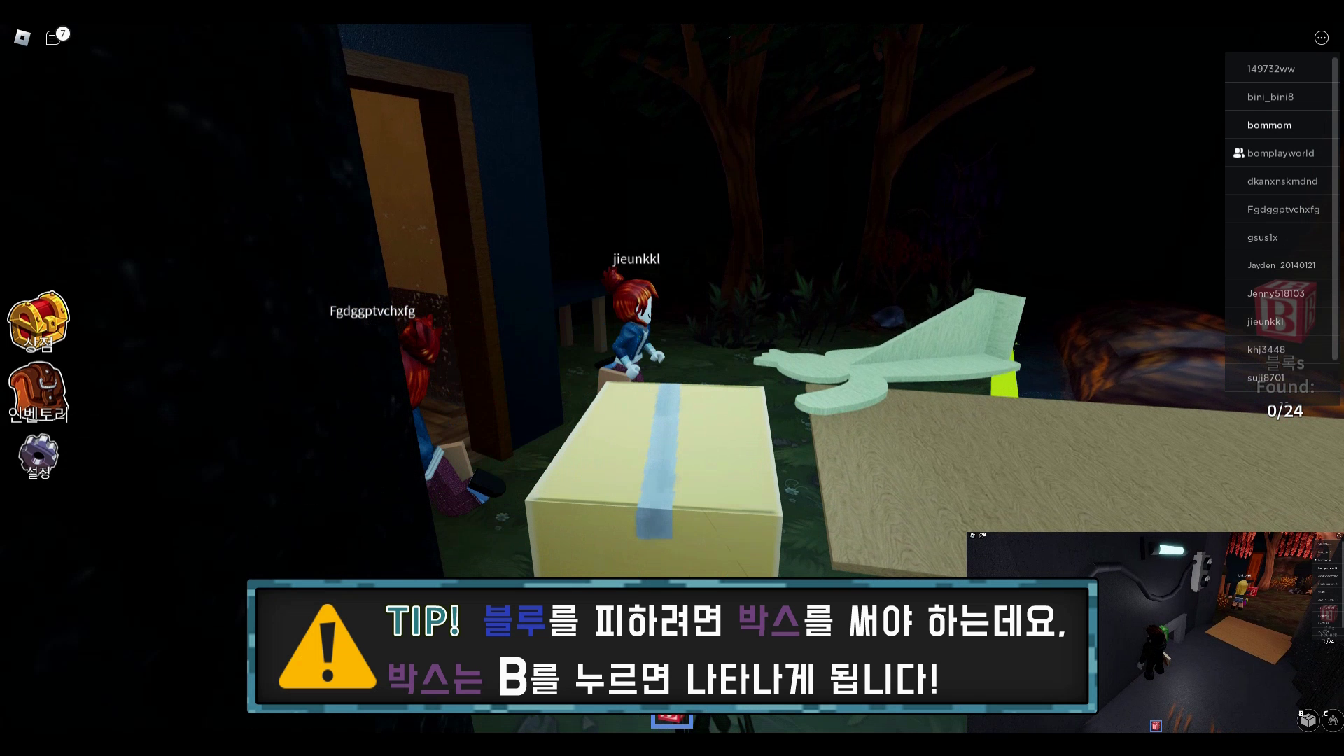 블루를 피하려면 박스를 써야합니다. 박스는 B키를 누르면 쓸 수 있습니다.