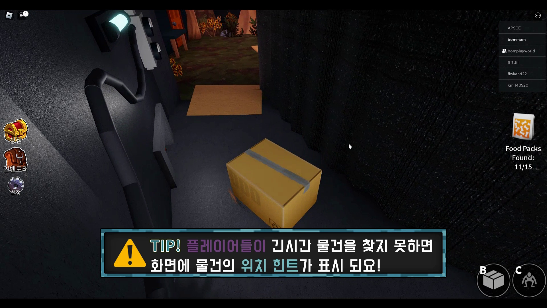 만약 게임을 플레이하다가 아이템을 찾지 못해도 일정시간이 지나면 화면에 아이템의 위치가 표시됩니다. 화면에 반짝 빛나는 물건이 있으면 따라가세요.
