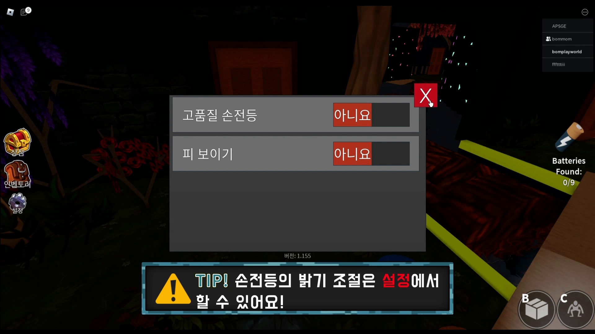 설정에서 손전등의 밝기 조절이 가능하니 밝기 조절을 하면 조금 더 밝은 화면에서 플레이를 할 수 있습니다.