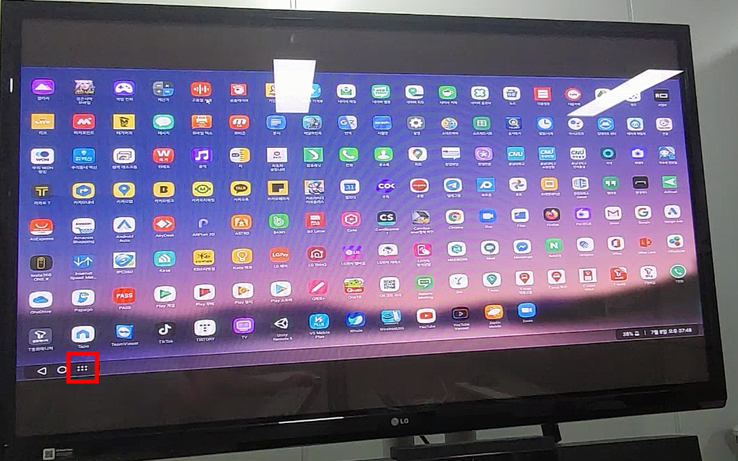 그러면 TV 화면에 데스크탑 모드가 출력됩니다. 휴대폰 내 모든 앱들을 보고 싶다면, 아래 사진에 버튼을 선택하면, 모든 앱을 보고 실행할 수 있습니다.
