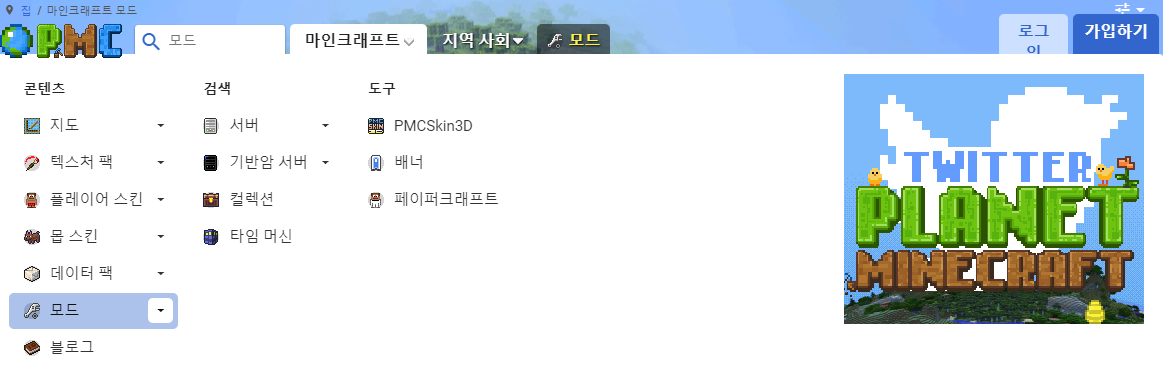 이밖에 지도, 텍스처 팩, 플레이어 스킨, 몹 스킨, 데이터 팩, 모드, 블로그 등의 콘텐츠를 제공하고 있습니다.