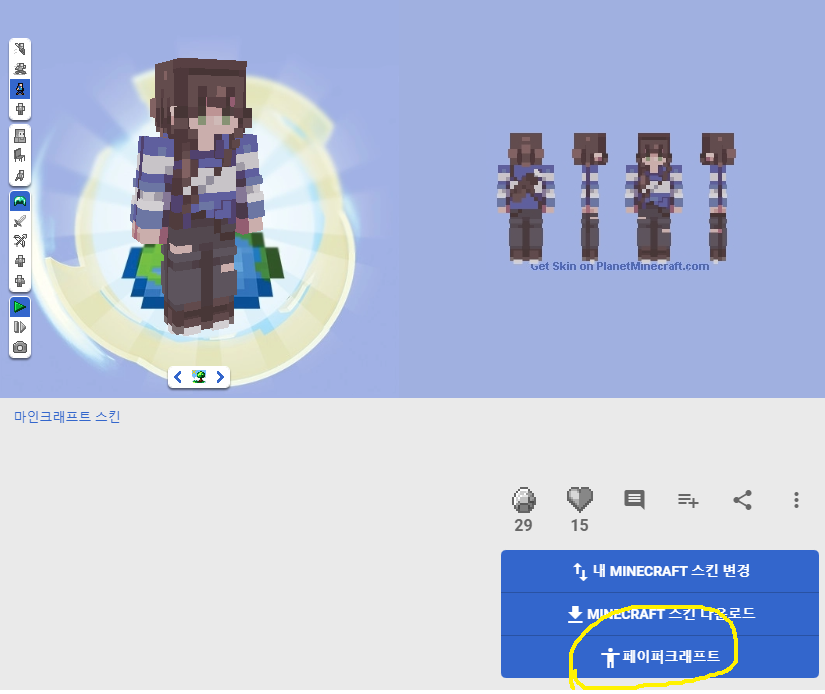 [3. 플래닛마인크래프트 ★★★☆☆] 장점 : 무료스킨을 제공한다. 페이퍼크래프트를 제공 한다.