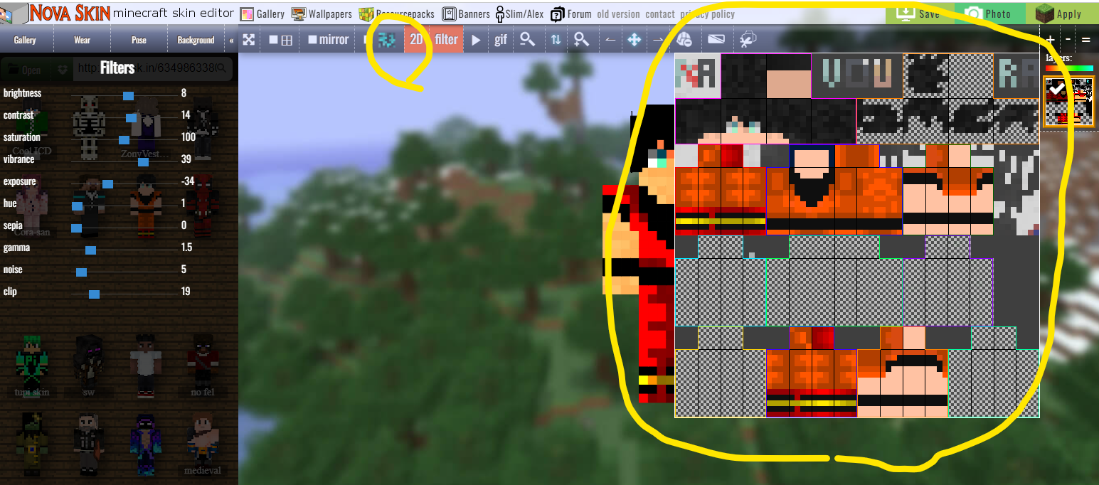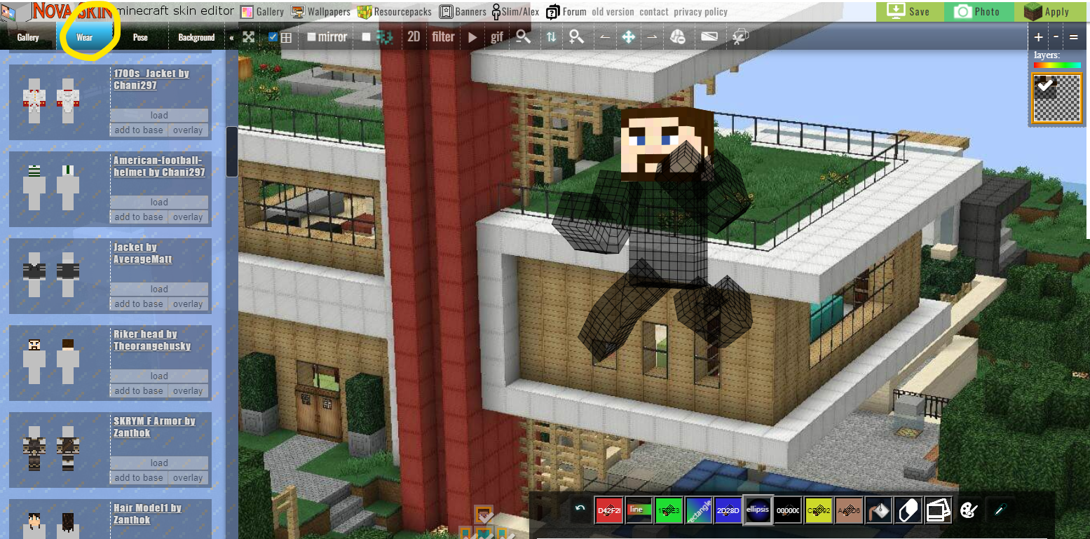 노바스킨은 minecraftskins.net과 마찬가지로 사이트 내에서 바로 캐릭터 꾸미기가 가능 한 사이트입니다.