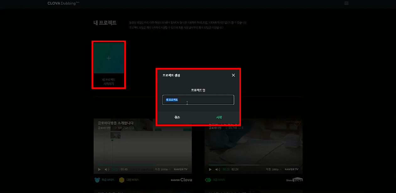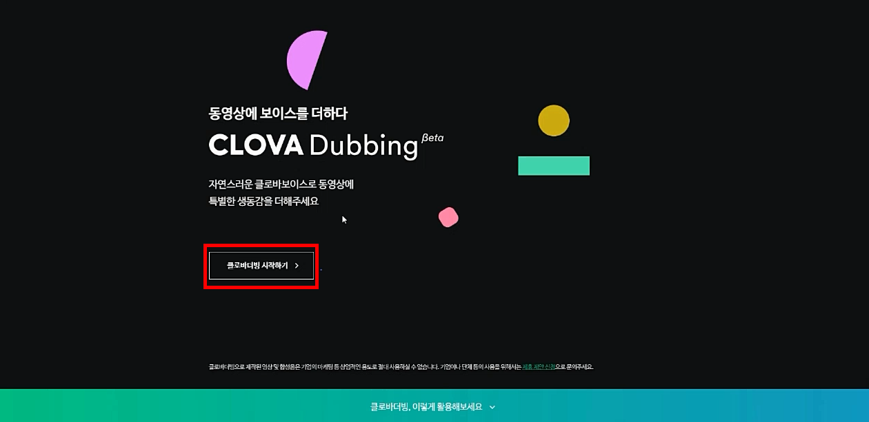 이제 메인화면에서 클로바더빙 시작하기 버튼을 클릭합니다.