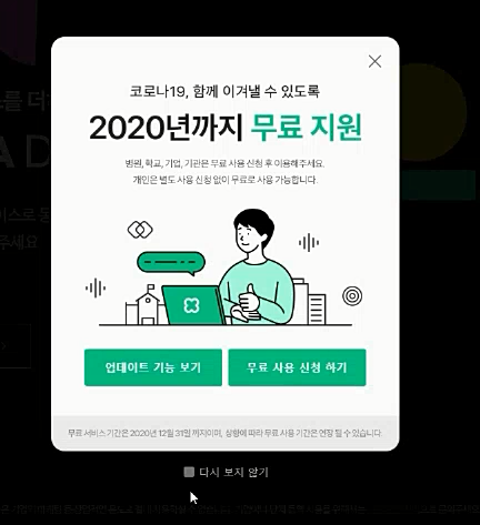 코로나19로 2020년까지 무료 지원을 한다고 합니다. 병원, 학교, 기업, 기관 무료 사용 신청을 해야 한다고 합니다.