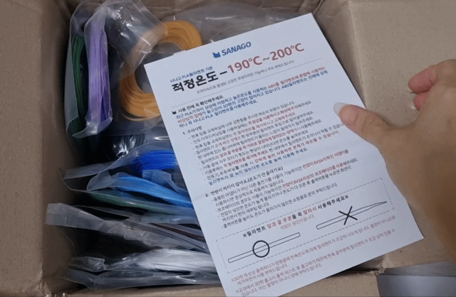 샘플 필라멘트는 랜덤으로 제공되고 있는데, 저의 경우 하얀색 필라멘트가 들어 있었습니다.