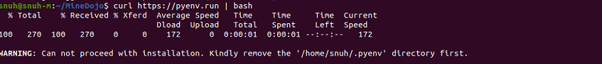 그 다음에 pyenv를 설치합니다. 다음 명령어를 실행하면 됩니다: