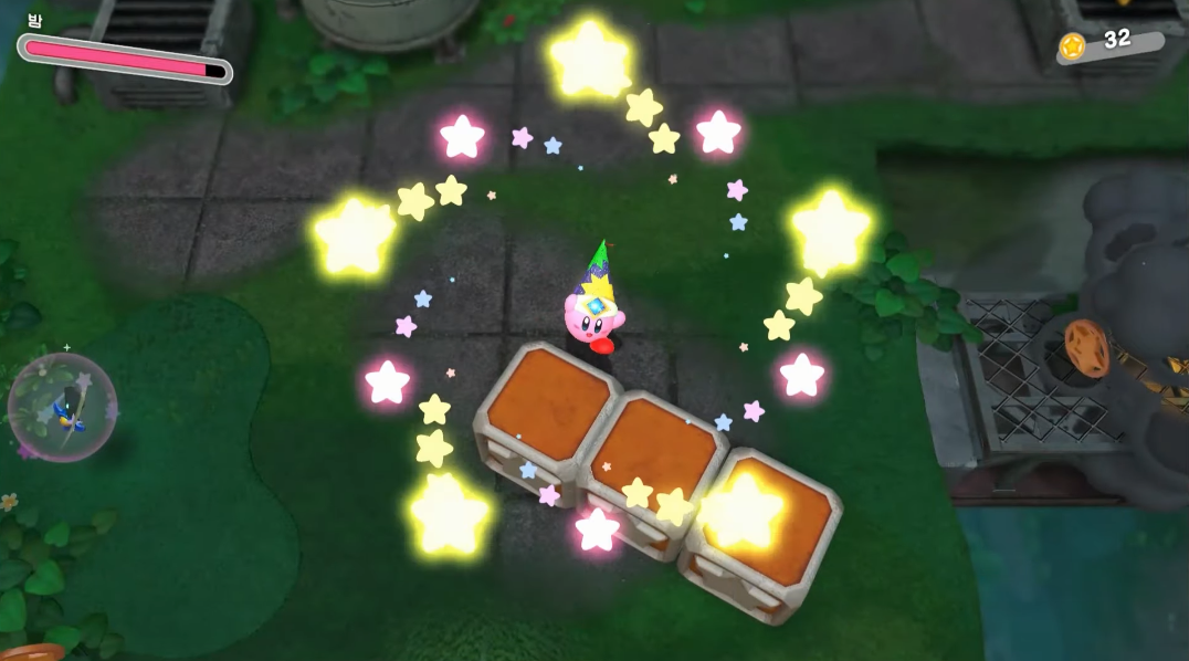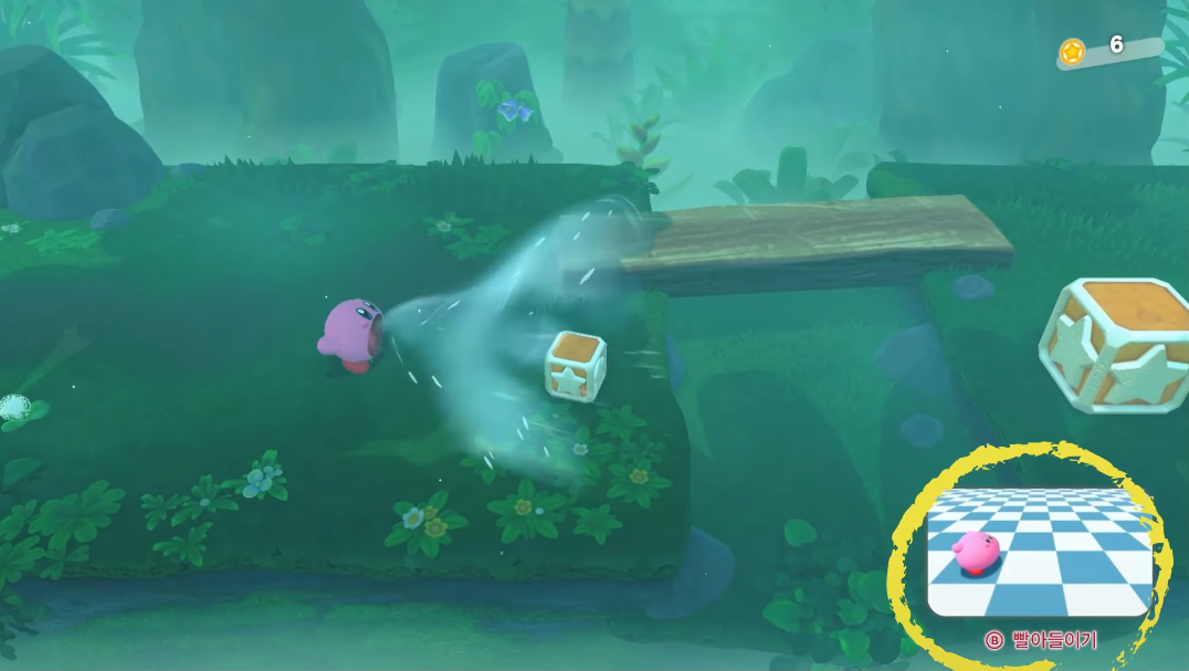 B버튼을 누르면 물건이나 캐릭터를 흡수하게 되고, 상자를 던지거나, 캐릭터의 능력을 흡수할 수 있게 됩니다.