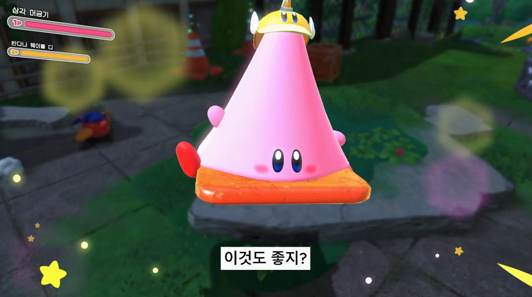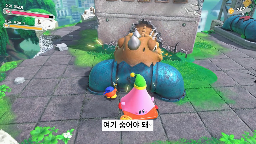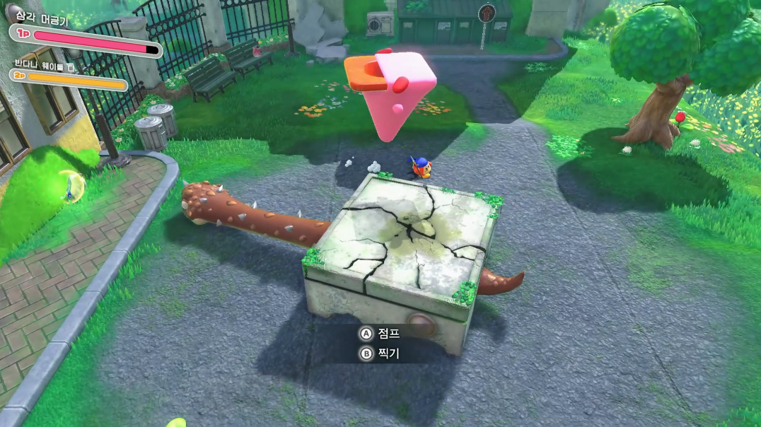 머금기를 한후 거북이가 공격을 해오는데, 옆으로 이동하면서 거북이 위로 올라가 고깔로 찍어줍니다. 그러면 웨이들디를 구출할 수 있습니다.