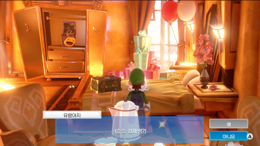 7. 루이지는 방으로 이동하게 되고, 침대를 클릭하고 침대에서 쉽니다.