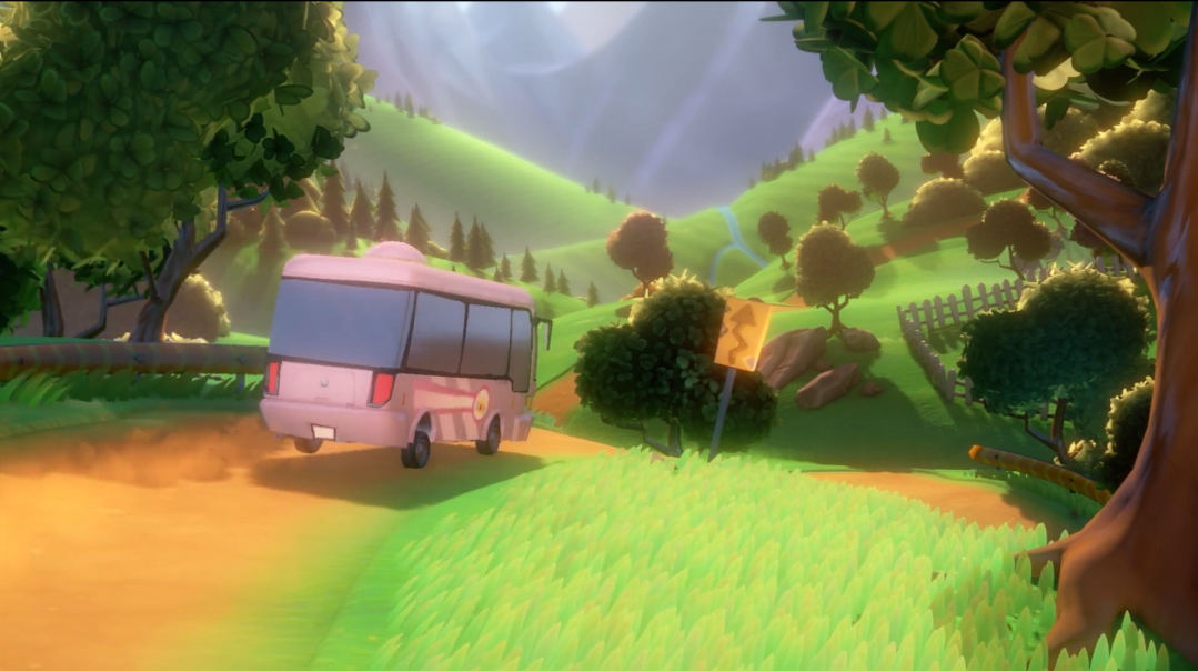 1. 게임을 시작하면, 루이지와 친구들은 버스를 타고 어디로 가고 있습니다.