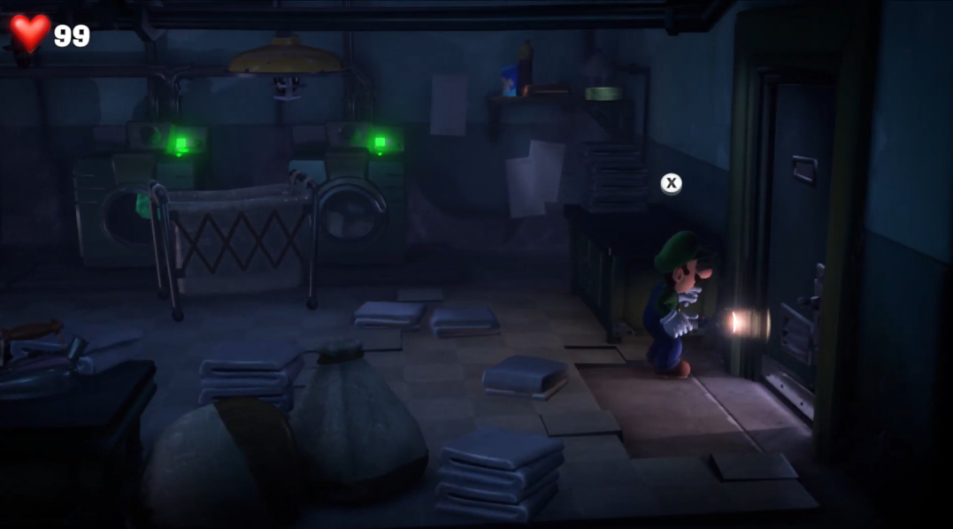 1. 세탁실에서 게임을 시작하게 됩니다. 오른쪽으로 이동하면 세탁실에서 나가는 문이 있습니다.