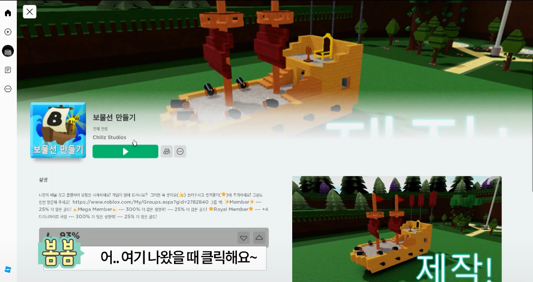 안녕하세요. 오늘은 로블록스 보물섬 만들기 그룹회원 가입하는 방법에 대하여 설명드리겠습니다. 그룹 게임은 보물선 이외에 다른 게임에서도 혜택이 있으니, 혜택을 확인하고 가입할 수 있으면 가입하는 게 좋습니다. 아래 동영상으로 쉽게 설명해 놓았으니 참고해 주시면 됩니다.