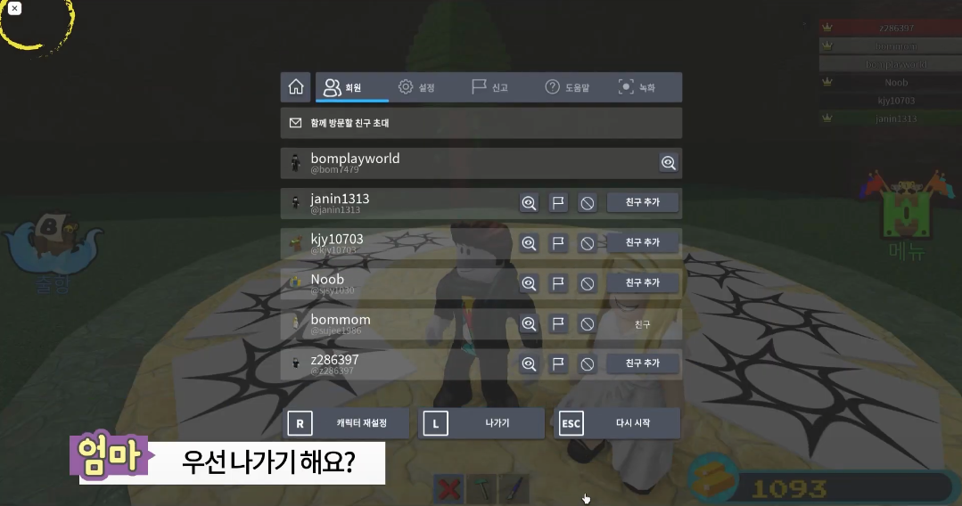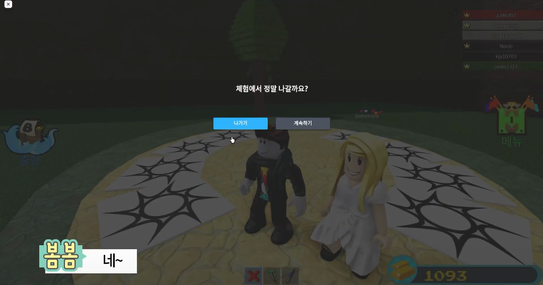 3. 나가기 버튼을 누르면 게임 접속화면으로 돌아갈 수 있습니다.