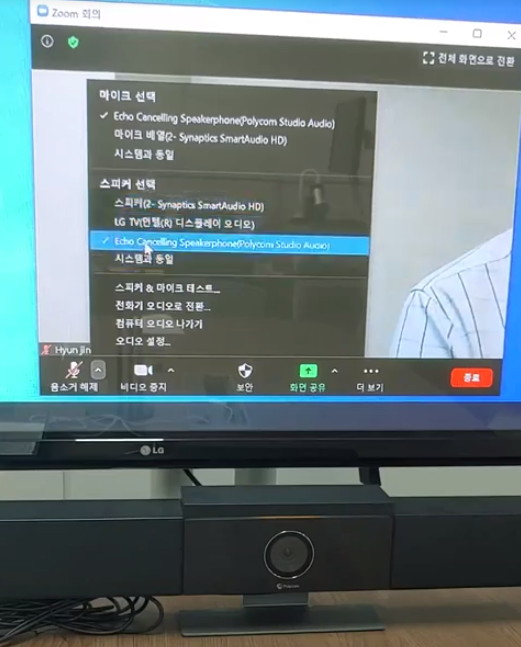 이제 Zoom에서 폴리콤의 마이크와 스피커를 선택 합니다.