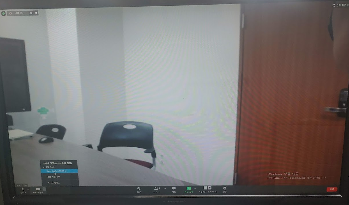 Zoom 프로그램 내 비디오를 HD60 S+로 선택하면 기존 웹캠에서 캡쳐되고 있는 비디오를 볼수 있다.