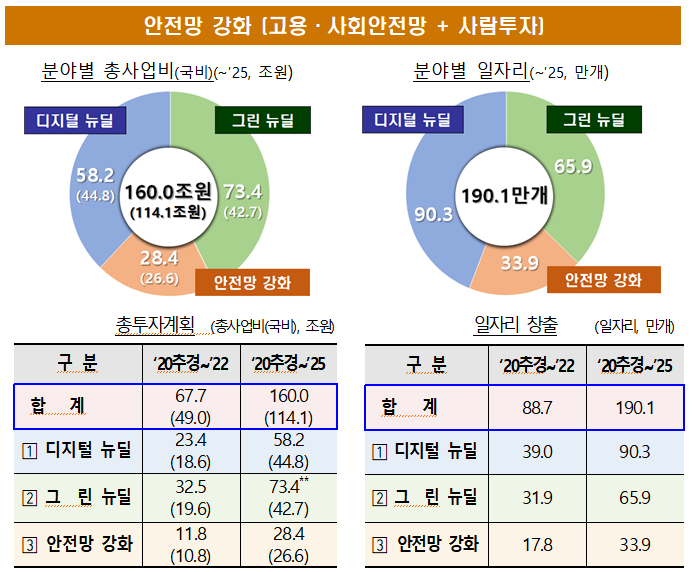 전체 누계를 보면 총사업비를 160조, 190만 개의 일자리를 창출하겠다고 합니다.