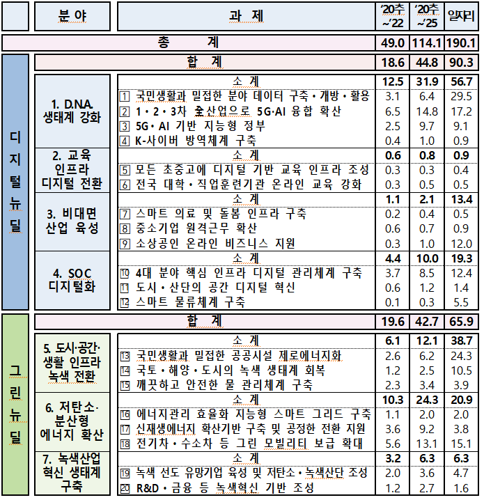 1. (디지털 뉴딜) 총사업비 58.2조 원(국비 44.8조 원) 투자, 일자리 90.3만 개 창출