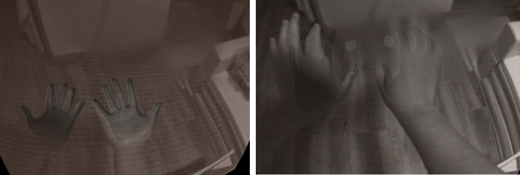 바닥에 2~3초정도만 놔두면 바로 핸드 트레킹이 인식되는 것을 확인 할수 있었습니다.